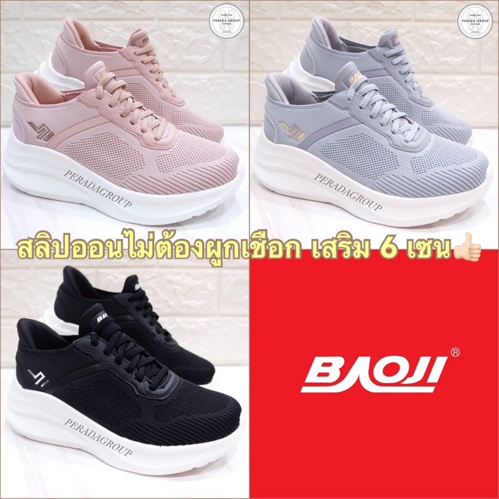 baoji แท้💯% พร้อมส่ง รองเท้าผ้าใบเสริมส้น ผ้าใบสลิปออน สูง 6 เซน รุ่น BJW1151 ไซส์ 37-41