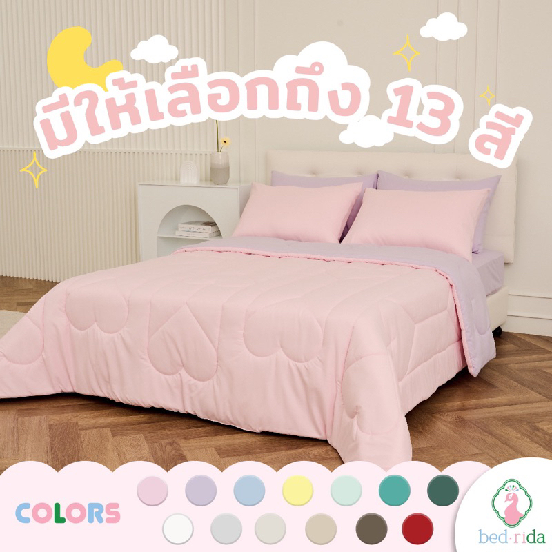 BEDRIDA ผ้าปูที่นอนรัดมุม พรัอมผ้านวม เนื้อผ้า Aloe Vera Moisturized Fabric ✨ ด้วยนวัตกรรม Aloe Vera Touch 💚 ทำให้เนื้อสัมผัสของผ้ามีความนุ่มลื่น ละมุน เย็นสบาย ไม่ระคายเคืองผิว เนื้อผ้าทอละเอียดถึง 500 เส้นด้าย / 10 ตร.ซม. เนื้อผ้าหนานุ่ม ระบายอากาศได้ดี ผ้าปูที่นอนรัดมุมรองรับความหนาสูงสุด 14 นิ้ว เราเป็นโรงงานตัดเย็บเอง ไว้ใจเรื่องคุณภาพได้เลยนะคะ **ผ้าปูที่นอน,ปลอกหมอนหนุน, ปลอกหมอนข้าง จะเป็นสีเดียวกันทั้งหมด ***ผ้านวมเป็นเเบบทูโทน 2 สีใน 1 ผืน สามารถสลับด้านใช้ได้ 💕ชุดผ้าปูที่นอน ขนาด 3.5 ฟุต + ผ้านวมเย็บติด (รวม 4 ชิ้น) ปลอกหมอน 1 ชิ้น ปลอกหมอนข้าง 1 ชิ้น ผ้าปูที่นอน 1 ชิ้น ผ้านวมทูโทนเย็บติด ขนาด 70 x 90 นิ้ว 1 ผืน 💕ชุดผ้าปูที่นอน 5 ฟุต + ผ้านวมเย็บติด (รวม 6 ชิ้น) ปลอกหมอน 2 ชิ้น ปลอกหมอนข้าง 2 ชิ้น ผ้าปูที่นอน 1 ชิ้น ผ้านวมทูโทนเย็บติด ขนาด 100 x 90 นิ้ว 1 ผืน 💕ชุดผ้าปูขนาด 6 ฟุต + ผ้านวมเย็บติด (รวม 6 ชิ้น) ปลอกหมอน 2 ชิ้น ปลอกหมอนข้าง 2 ชิ้น ผ้าปูที่นอน 1 ชิ้น ผ้านวมทูโทนเย็บติด ขนาด 100 x 90 นิ้ว 1 ผืน หมายเหตุ • กรุณาตรวจสอบความเรียบร้อยของสินค้าก่อนกดรับสินค้า • หากพบ สินค้าชำรุด ผิดสี ผิดไซส์ อันเกิดจากความผิดพลาดของบริษัท รบกวนติดต่อเจ้าหน้าที่ทางเราจะรีบดำเนินการแก้ไขปัญหาโดยเร็วที่สุด • หากทำการซักสินค้าแล้ว ทางบริษัทขอปฎิเสธการคืนสินค้าในทุกกรณีนะคะ