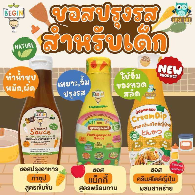 Begin บีกิน ซอสปรุงรส ซอสเด็ก top 8 free ทำน้ำซุป ผัด ทอด หมัก ไม่ชูรส ไม่มีสารกันเสีย โซเดียมต่ำ