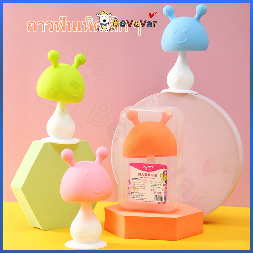 BEVAVAR ซิลิโคน ยางกัดเด็ก ยางกัดหัวเห็ด สำหรับเด็ก ดูแลช่องปาก กล่องเก็บของสุขาภิบาลแบบพกพา