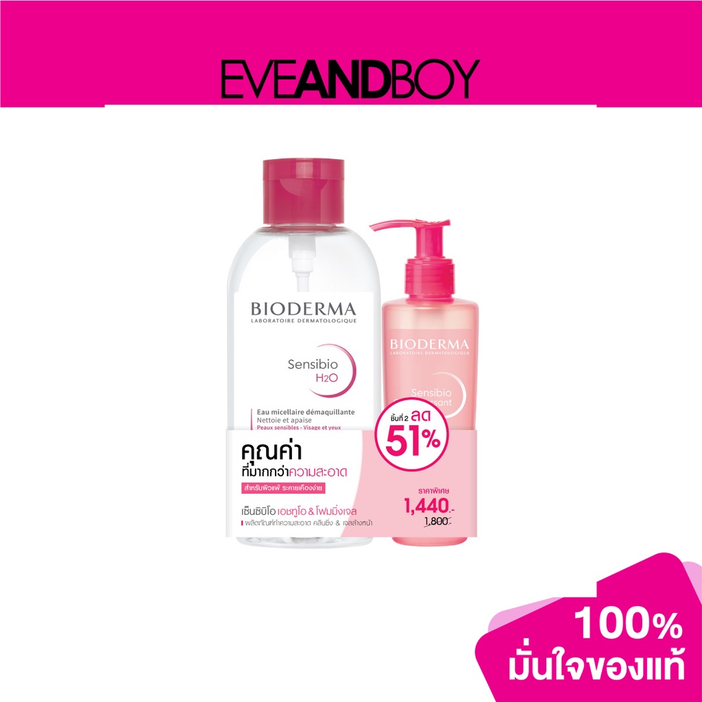 Sensibio H2O 850 ml คลีนซิ่งไบโอเดอร์มา เซ็นซิบิโอ เอชทูโอ “เวชสำอาง” ที่อ่อนโยนต่อผิวที่บอบบาง แม้บริเวณรอบดวงตา ด้วย Biomimetic Micellar Technology Sensibio Gel moussant 200 ml ไบโอเดอร์มา เซ็นซิบิโอ เจล มูซอง -เจลล้างหน้า ทำความสะอาดผิวอย่างอ่อนโยน พร้อมล็อคความชุ่มชื้นให้ผิวไม่ทำให้ผิวหน้าแห้งตึงหลังล้างหน้า ไม่อุดตันรูขุมขน