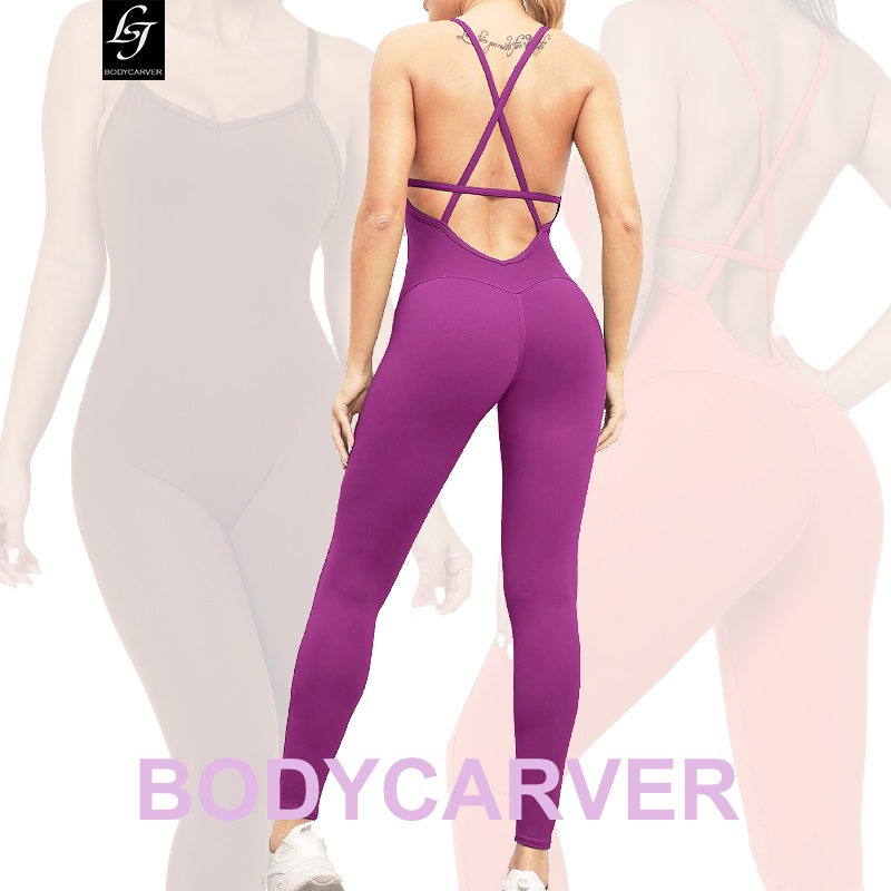 Bodycarver ความงาม ด้านหลัง โยคะ บอดี้สูท ผู้หญิง เบาะ ฟิตเนส ออกกําลังกาย กีฬา จั๊มสูท ยืดหยุ่นสูง ยิม โยคะ สวมชุด