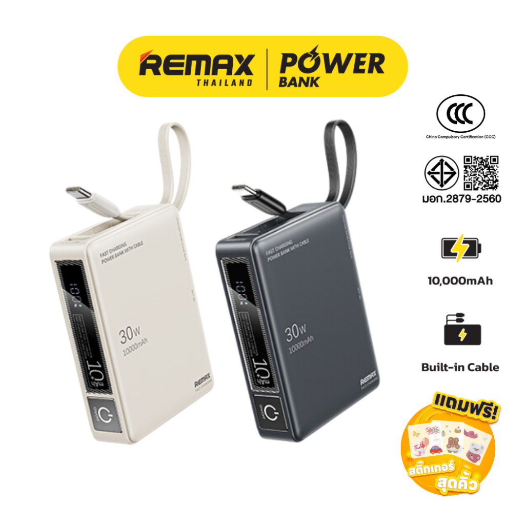 [ CCC ] Remax Power Bank รุ่น RPP-86 แบตสำรอง ความจุ 10000mAh สายชาร์จในตัว ชาร์จไว type-c มีประกันศูนย์ไทย มาตรฐาน มอก.