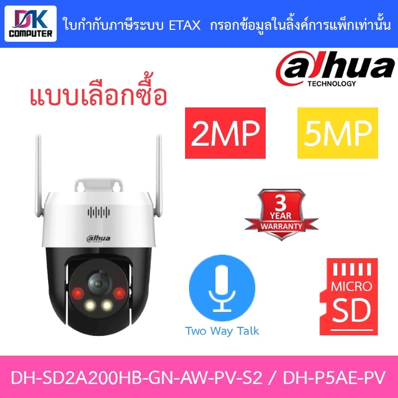 DAHUA กล้องวงจรปิด 2MP / 5MP DH-SD2A200HB-GN-AW-PV-S2 / DH-P5AE-PV