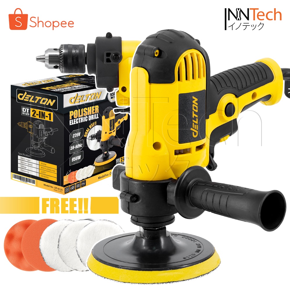 DELTON เครื่องขัดสีรถยนต์ 850W + สว่าน 2 IN 1เครื่องขัดสีรถยนต์ ขนาด 5 นิ้ว 850W + สว่าน 2 IN 1 รุ่นใหม่ 2 ฟังก์ชั่น Japan Invention รุ่น DT-6125