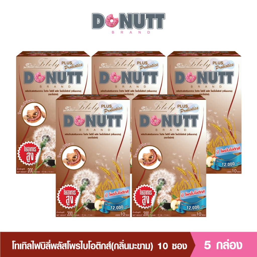 Donutt Brand ดีท็อกซ์ โพรไบโอติกส์ Donutt fiber โทเทิล ไฟบีลี่ พลัส โพรไบโอติกส์ ไฟเบอร์ กลิ่นมะขาม 5 กล่อง