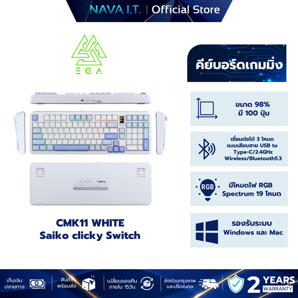 EGA TYPE CMK11 WHITE Saiko clicky Switch คีย์บอร์ดเกมมิ่งไร้สาย