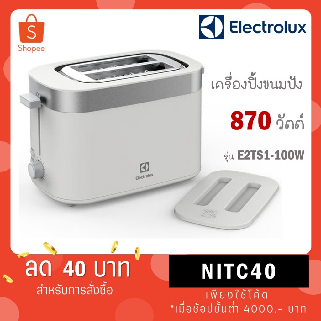 Electrolux เครื่องปิ้งขนมปัง รุ่น E2TS1-100W ขนาด 2 แผ่น ควบคุมความร้อน 7 ระดับ E2TS1 100W