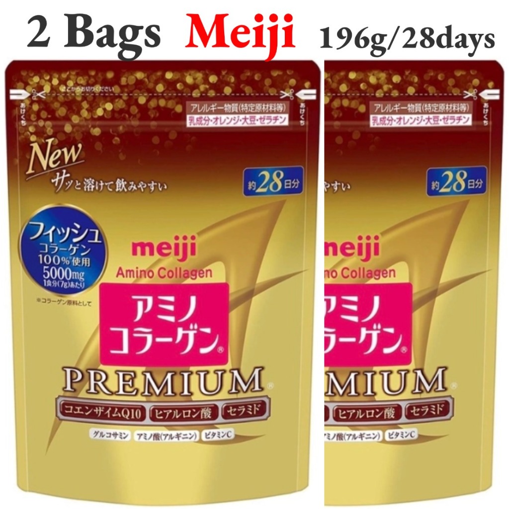 ⚡EXP:09/2027⚡2 ถุง Meiji Amino Collagen Premium 196g/28day(เมจิ อะมิโน คอลลาเจน)Collagen+CoQ10