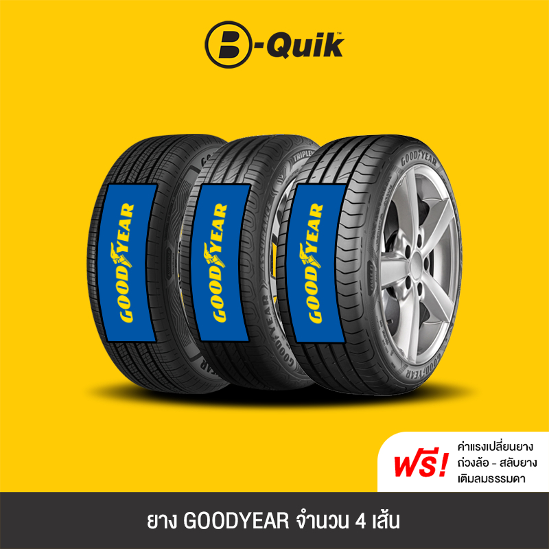 GOODYEAR 4 เส้น ยางรถยนต์ รถเก๋ง, กระบะ, SUV ขอบ 15"-20" - อายุยาง หรือ DOT ที่ทางร้านจำหน่าย อายุยางไม่เกิน 12 เดือน นับจากวันที่ทำรายการสั่งซื้อ เมื่อเปลี่ยนยางที่ บี-ควิก ฟรีค่าแรง / บริการถ่วงล้อฟรี / เติมลมยางธรรมดาฟรี / ไม่รวมตั้งศูนย์ล้อ ค่าบริการ 450 บาท และเติมลมยางไนโตรเจน 100 บาท รายละเอียดสินค้า "GOODYEAR รุ่น ASSURANCE DURAPLUS 2" - นุ่มเงียบ - ประหยัดน้ำมัน - อายุการใช้งานยาวนาน "GOODYEAR รุ่น ASSURANCE TRIPLEMAX 2" - นุ่มเงียบ - ระยะเบรกสั้น - เข้าโค้งแม่นยำ "GOODYEAR รุ่น CARGO MAX" - อายุการใช้งานยาวนาน - ยึดเกาะถนน - รีดน้ำดี - บรรทุกหนัก "GOODYEAR รุ่น EXCELLENCE" - นุ่มเงียบ - อายุการใช้งานยาวนาน - เข้าโค้งแม่นยำ "GOODYEAR รุ่น EFFICIENTGRIP PERFORMANCE" - นุ่มเงียบ - ยึดเกาะถนน - ประหยัดน้ำมัน "GOODYEAR รุ่น EFFICIENTGRIP SUV" - นุ่มเงียบ - ยึดเกาะถนน - ประหยัดน้ำมัน "GOODYEAR รุ่น EFFICIENTGRIP PERFORMANCE SUV" - นุ่มเงียบ - ยึดเกาะถนน - ระยะเบรกสั้น - รีดน้ำดี ลูกค้าจะได้รับหมายเลขคูปองจากแอดมินผ่านช่องแชท และนำหมายเลขคูปองไปแสดงกับเจ้าหน้าที่ ที่สาขา เพื่อใช้บริการที่ศูนย์บริการ B-Quik สาขาใกล้บ้านลูกค้า (*ทาง บี-ควิก ไม่มีบริการจัดส่งสินค้าถึงบ้าน) เงื่อนไขที่สำคัญ เมื่อสั่งซื้อเสร็จแล้วกรุณาทักแชทเพื่อแจ้งรายละเอียดดังนี้ 1. ศูนย์บริการ บี-ควิก สาขาที่ต้องการเข้ารับบริการ (ลูกค้าไม่สามารถเปลี่ยนแปลงสาขาที่เข้ารับบริการได้ หากแจ้งสาขาที่เข้ารับบริการกับทางแอดมินแล้ว) 2. ชื่อ, เบอร์โทร และวันที่ต้องการเข้ารับบริการ 3. ยี่ห้อรถยนต์ รุ่นรถยนต์ และทะเบียนรถยนต์ 4. คูปองสามารถใช้ได้ครั้งเดียวเท่านั้น คูปองดังกล่าวจะมีอายุการใช้งาน 30 วัน นับหลังจากวันที่สั่งซื้อ มิเช่นนั้นจะถือว่าการสั่งซื้อดังกล่าวเป็น โมฆะ และไม่ทำการคืนเงิน 5. หากต้องการซื้อ E-Coupon หลายรายการ (1 คำสั่งซื้อสามารถใช้ได้กับรถ 1 คันเท่านั้น กรณีไม่ใช้คูปองในวันเดียวกัน หรือสาขาเดียวกัน) กรุณาแยกคำสั่งซื้อ 6. ร้านค้าขอสงวนสิทธิ์ในการเปลี่ยนแปลงเงื่อนไขโดยไม่ต้องแจ้งให้ทราบล่วงหน้า *หากไม่แจ้งรายละเอียดแอดมินขอสงวนสิทธิ์ในการเข้ารับบริการ (เนื่องจากต้องมีการประสานงานกับทางศูนย์บริการ) **ไม่สามารถเข้ารับบริการได้ภายในวันเดียวกัน กับวันที่ทำรายการสั่งซื้อผ่าน Shopee ได้ ***สามารถเข้ารับบริการได้หลัง 7 วันทำการ นับจากวันที่สั่งซื้อ และแจ้งข้อมูลครบถ้วน ****ทางร้านจะกด 'จัดส่งสินค้า' ตามระบบของช้อปปี้ ภายใน 2 วันนับจากวันที่ลูกค้าสั่งซื้อเข้ามา เพื่อป้องกันออเดอร์ยกเลิกอัตโนมัติ (แต่เป็นการเข้ารับบริการที่สาขา ไม่ได้จัดส่งสินค้าไปที่อยู่ลูกค้า) *****ในกรณีที่ทำรายการสั่งซื้อ แยกเป็น 2 คำสั่งซื้อไม่สามารถรวมบิลกั