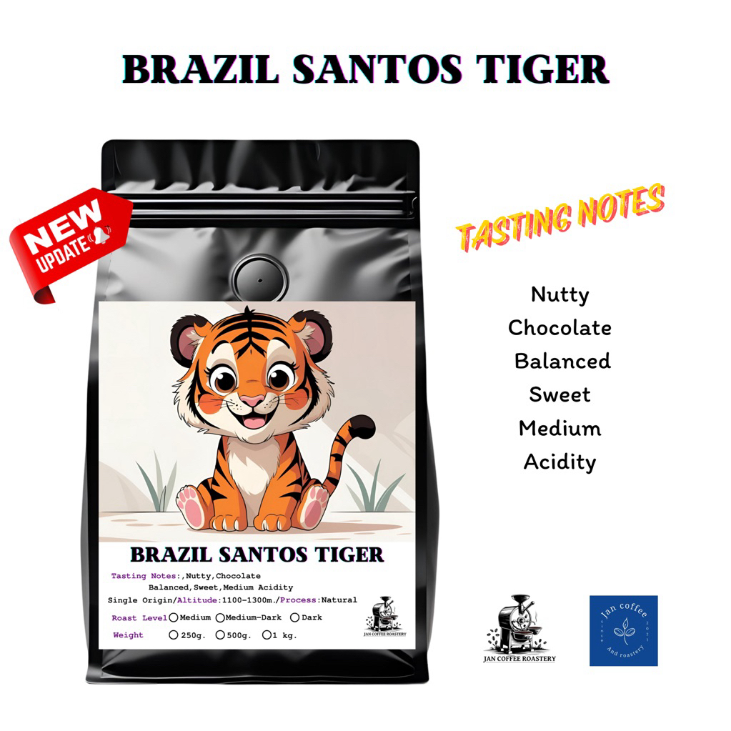 Jan Coffee Roastery Brazil santos tiger กาแฟ จากประเทศบราซิล ซานโตส ไทเกอร์ โทนช็อคโกแล็ต นัดตี้