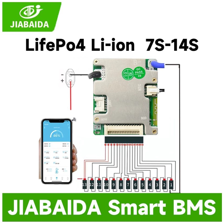 JBD BMS Smart BMS 7-14S, 7-24S,10S-17S, 6-22S ชนิด LiFePO4, NMC, Li-ion พร้อม Bluetooth NTC มีบาลานช์ในตัว