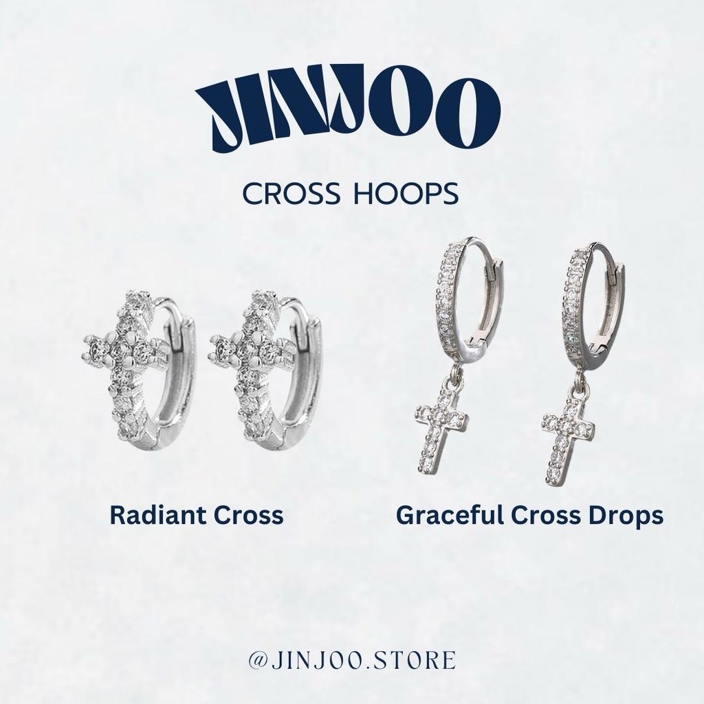 Jinjoo ต่างหูห่วงไม้กางเขน Cross Hoops ดีไซน์สวยเท่