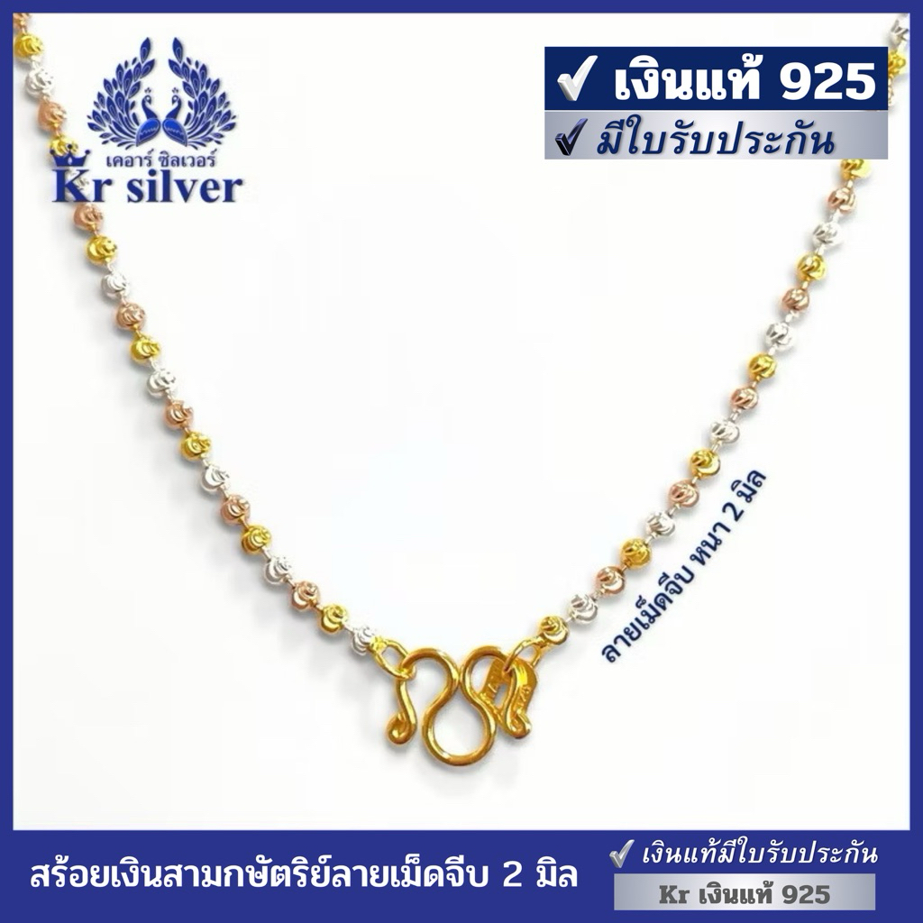 Kr silver เงินแท้มีใบรับประกัน สร้อยคอเงินแท้สามกษัตริย์ ลายเม็ดจีบ อิตาลี (หนา2 มิล) | N3K20001 - รูปที่ 1