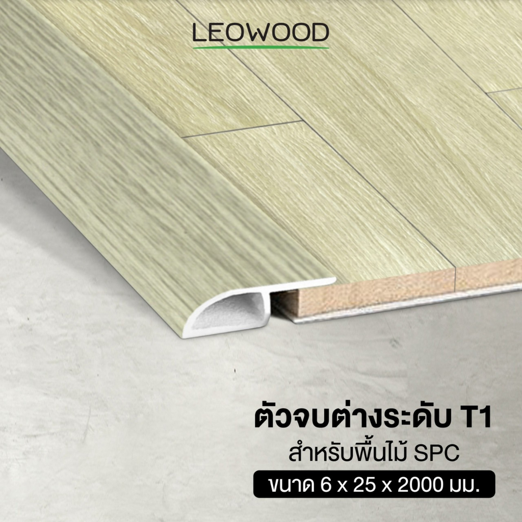 Leowood ตัวจบ พื้นต่างระดับ PVC (T1) สำหรับพื้นไม้ SPC ยาว 2 เมตร ส่งฟรี มี 7 สี อุปกรณ์จบงาน