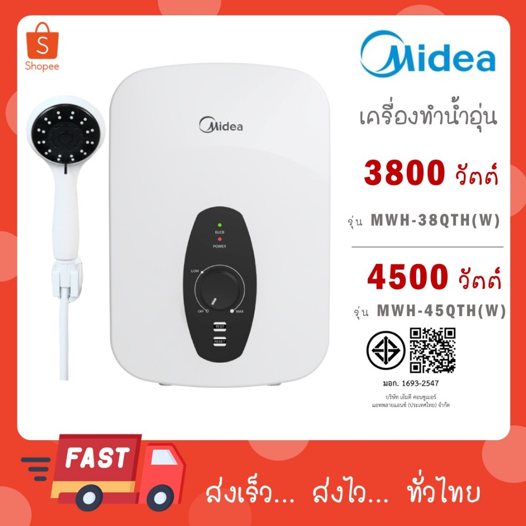 Midea เครื่องทำน้ำอุ่น รุ่น MWH-38QTH(W) 3800W / รุ่น MWH-45QTH(W) 4500W