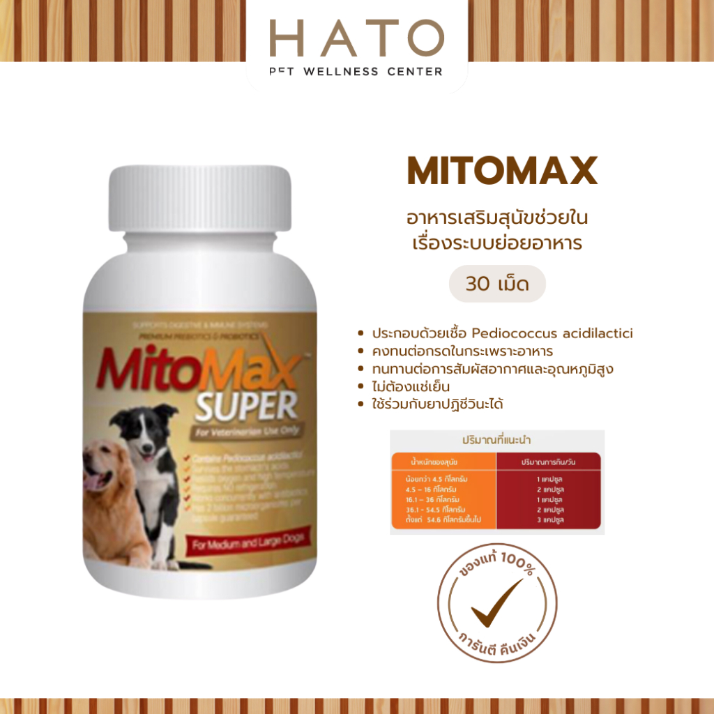 Mitomax Medium-Large Dogs Supplement อาหารเสริมสุนัขช่วยในเรื่องระบบย่อยอาหาร 30 เม็ด