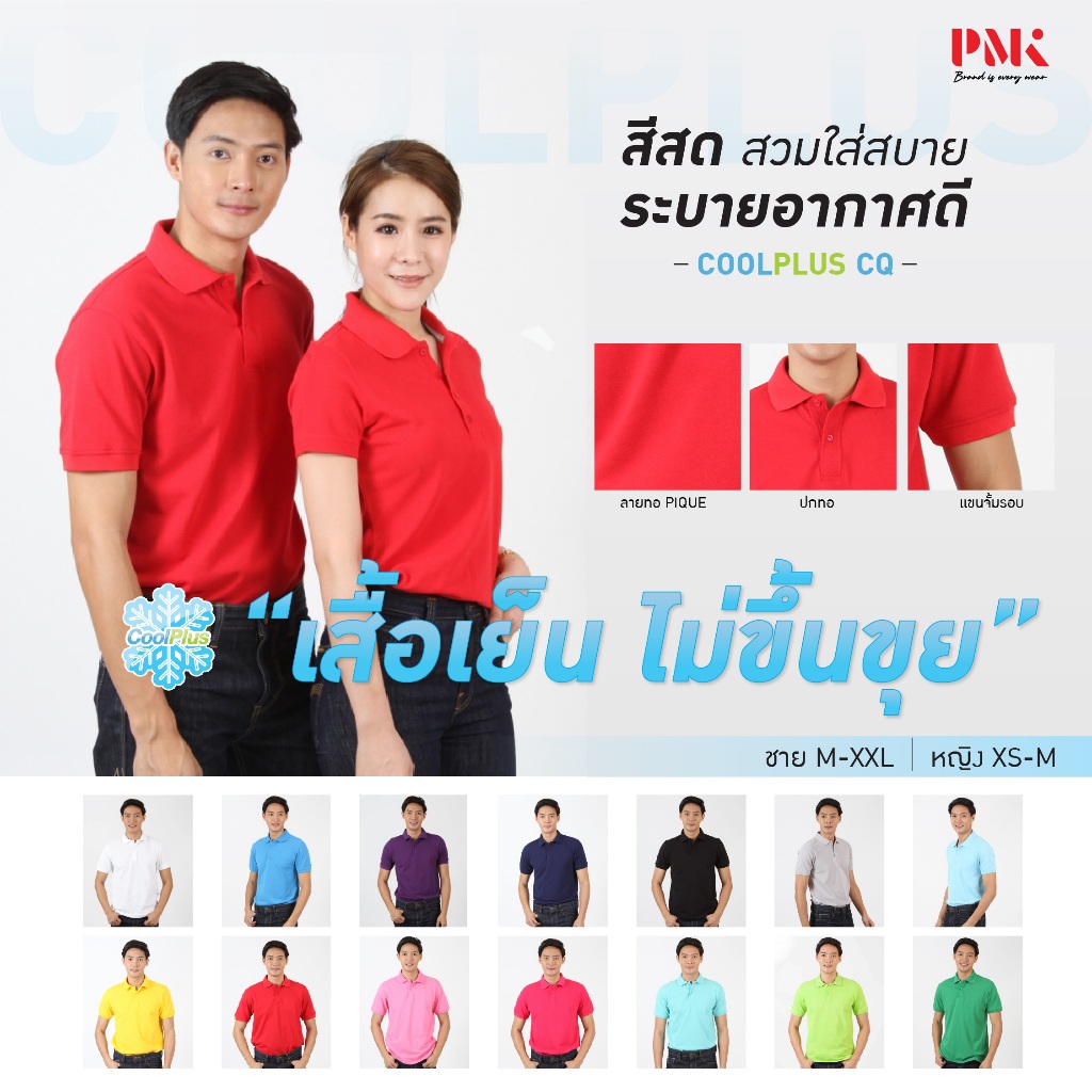 PMK-01CQ - เสื้อโปโล รุ่น Coolplus CQ เสื้อคอปก สีสด คงทน อยู่ทรงสวย เย็น สบาย ไม่ขุย ผู้ชาย ผู้หญิง