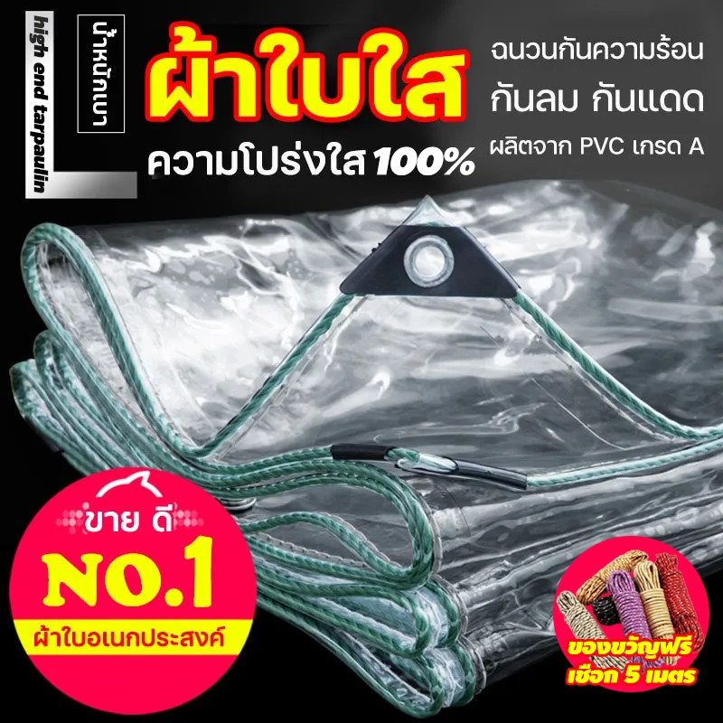 PVC ผ้าใบใส ผ้าใบใสมัว(มีตาไก่) กันน้ำ ป้องกันพายุไต้ฝุ่น ส่งผ่านแสง100%ขนาด1x2 2x2 2x3 2x4 3x3 3x4 3x5เมตร