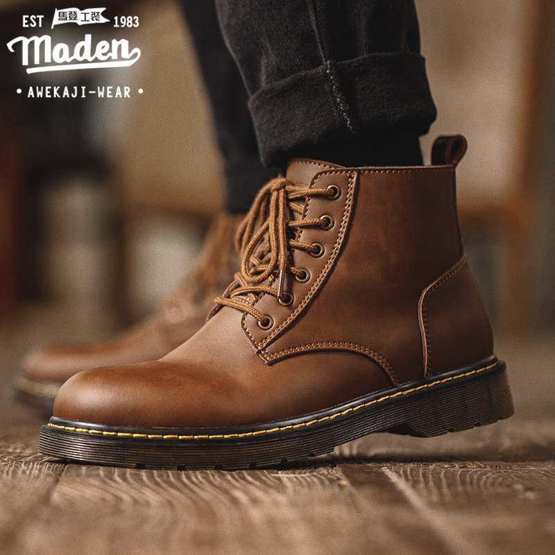 Retro ชายหนุ่มเหนียวสุภาพบุรุษธุรกิจ Martin รองเท้า high-top สไตล์อังกฤษรองเท้าเครื่องมือกลางอินเทรนด์ sh