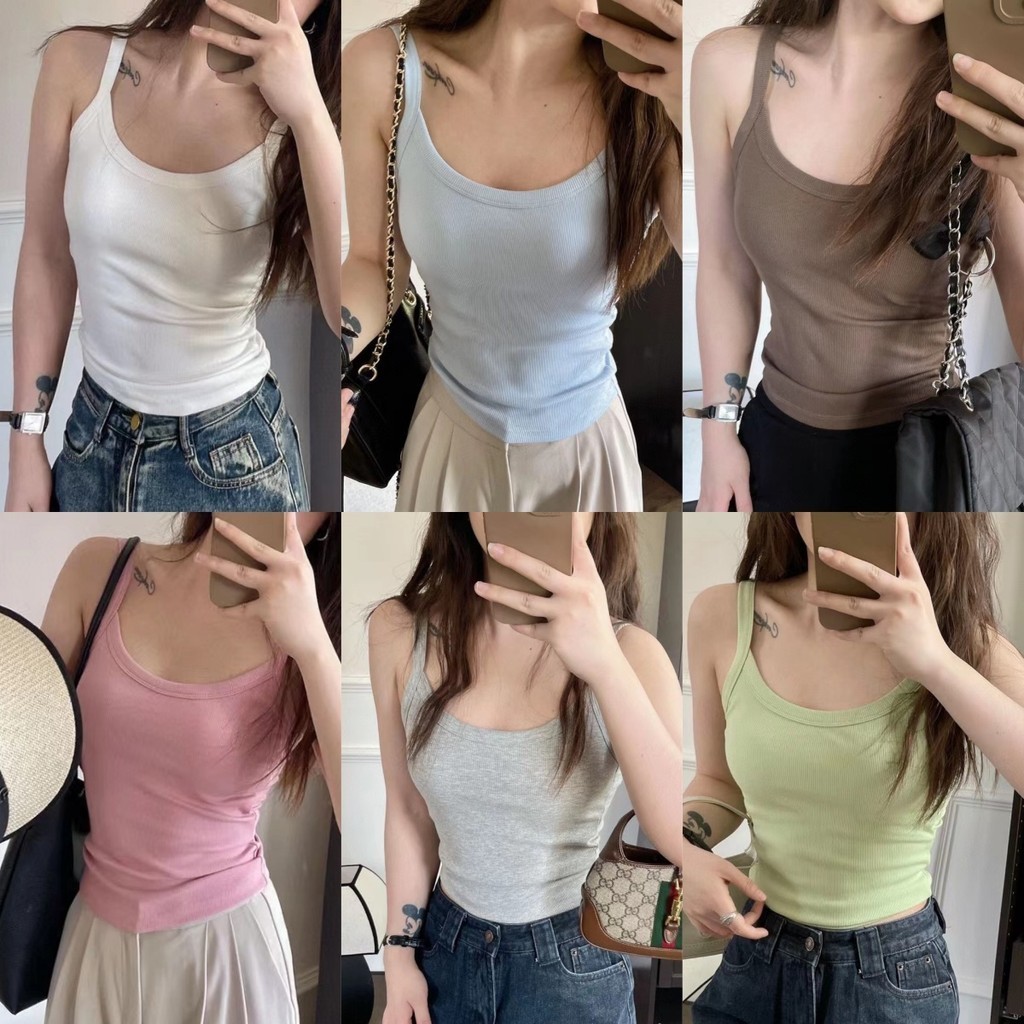 🌜Soroh🌛เสื้อสายเดี่ยว มีฟองน้ำ สีพาสเทล ครอป หลากสี เข้ารูป🌟เสื้อกล้าม สไตล์เกาหลี หลากสี มินิมอล✨#FY1019