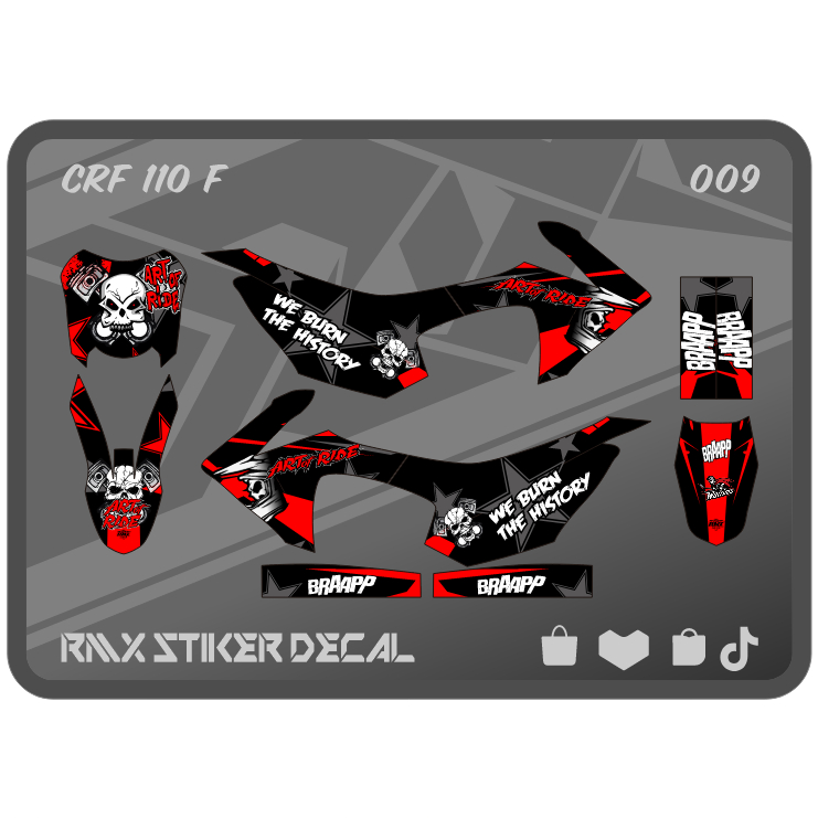 STABILO MERAH HIJAU CRF 110 FULLBODY STICKER (009) 110F MINI TRAIL MINIMOTO DECAL STICKER BLACK RED, YELLOW, GREEN, DARK/LIGHT BLUE, GOLD, PINK/PINK, ORANGE/ORANGE, WHITE, HOLOGA
