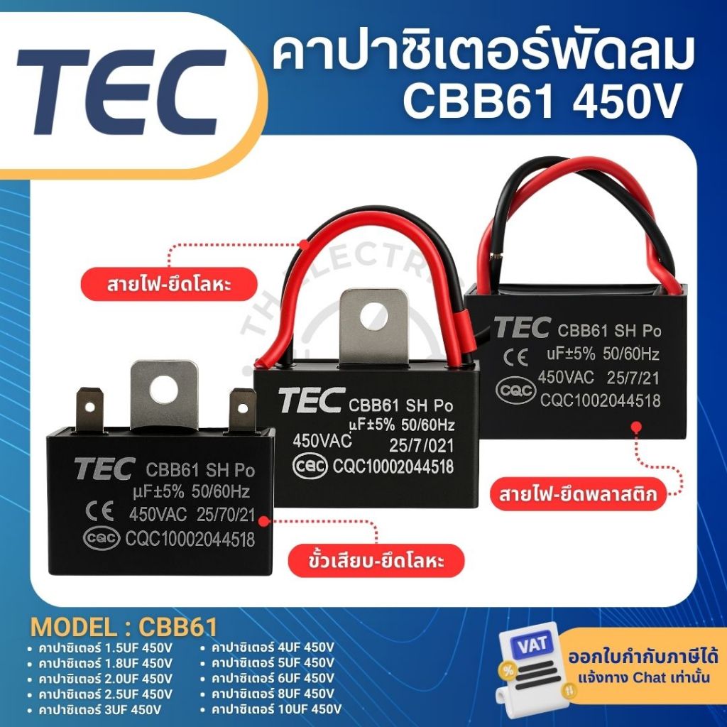 TEC คาปาซิเตอร์ Capacitor พัดลม CBB61 450V อะไหล่พัดลม แคปพัดลม