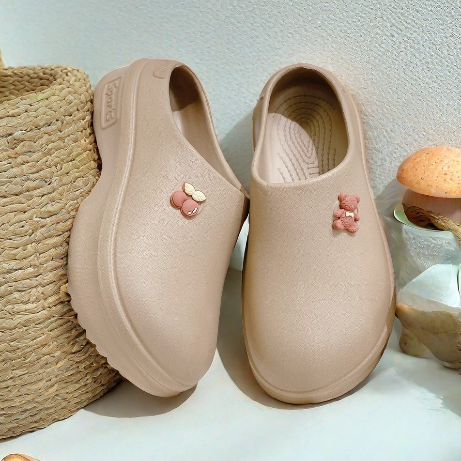 TIKP อุปกรณ์เสริมฟรี รองเท้าแตะผู้หญิง รองเท้าหัวโต ขาว 3.5cm พื้นหนา กันลื่น กันน้ำ ทนต่อการสึกหรอ เหมาะกับฤดู