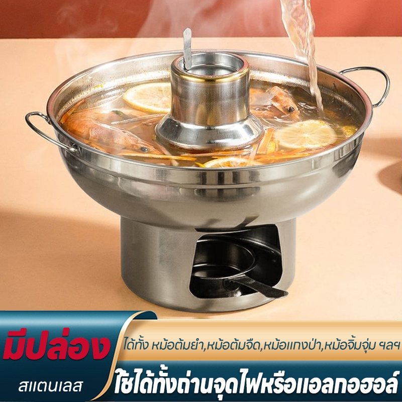 Utensils หม้อไฟ 20ซม สแตนเลส มีปล่อง ต้มยำ สแตนเลส หม้อใส่ต้ม หม้อใส่แกง