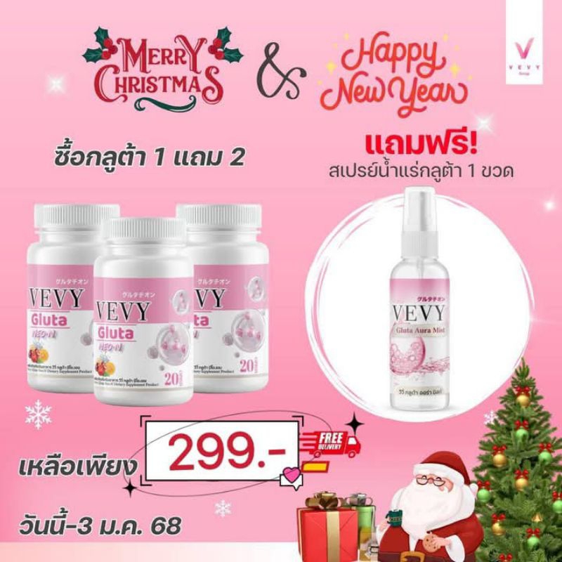 VEVY GLUTA NEO-N วีวี่ กลูต้า นีออน +สเปรย์น้ำแร่กลูต้าไข่มุก Vevy Gluta Aura Mist ขนาด 60 มล. (1 กระปุก มี 20 แคปซูล)