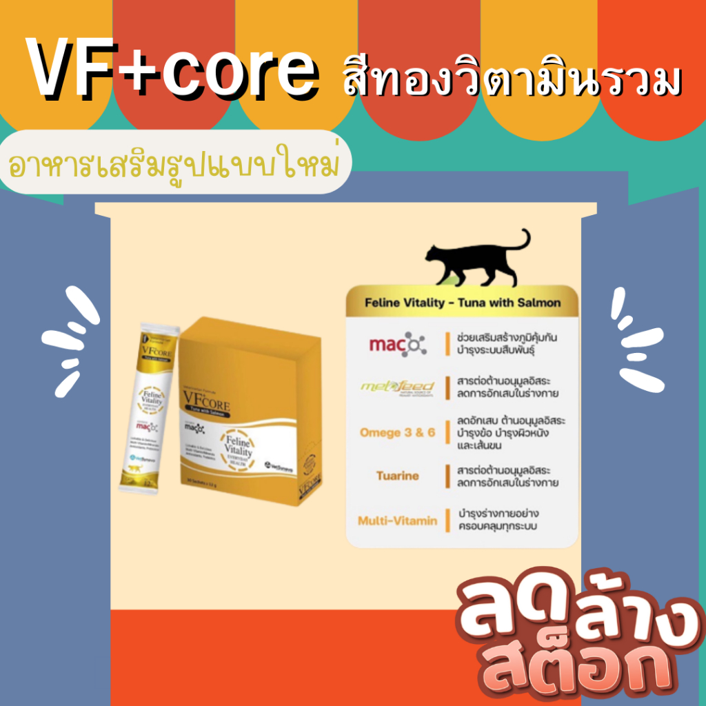 VF+core L-lysine ไลซีน ขนมแมวเลีย สีทองวิตามินรวม สำหรับสุนัขและแมว 5 ซอง
