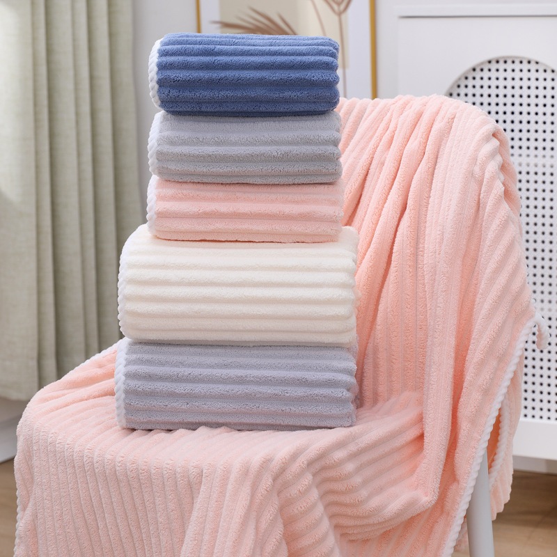 YJR-01 【ขนาด140x70ซม.】ผ้าเช็ดตัว ผ้าขนหนูอาบน้ำ ขนนุ่ม ซับน้ำดี ผืนใหญ่ห่อตัวได้ นุ่มไม่บาดผิว สำหรับผู้ใหญ่ ลายคลื่น
