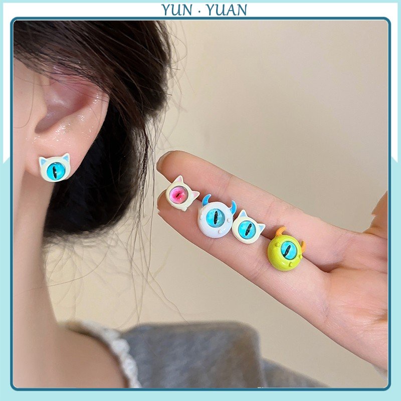 【Yunyuan】ต่างหูเพทาย รูปการ์ตูนแมวน้อยน่ารัก สําหรับผู้หญิง 2023